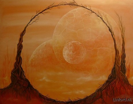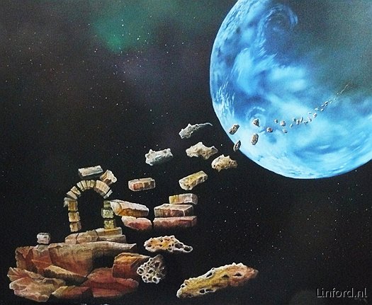 Sometimes an idea comes up while painting another one. For instance when I was painting the small astronaut(40/50cm) the urge to paint a larger space themed painting became rather strong, so before the portrait was finished I had to paint the spaced rock arch(100/80cm). So really this shows how one painting can be the start of the next.